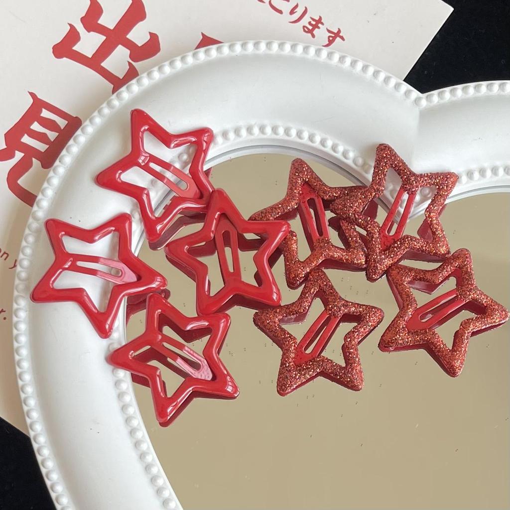 Clips de păr Y2K Stea cu Sclipici Roșu - Perfect pentru Look-uri Picante de Anul Nou și Stiluri la Modă Mileniale