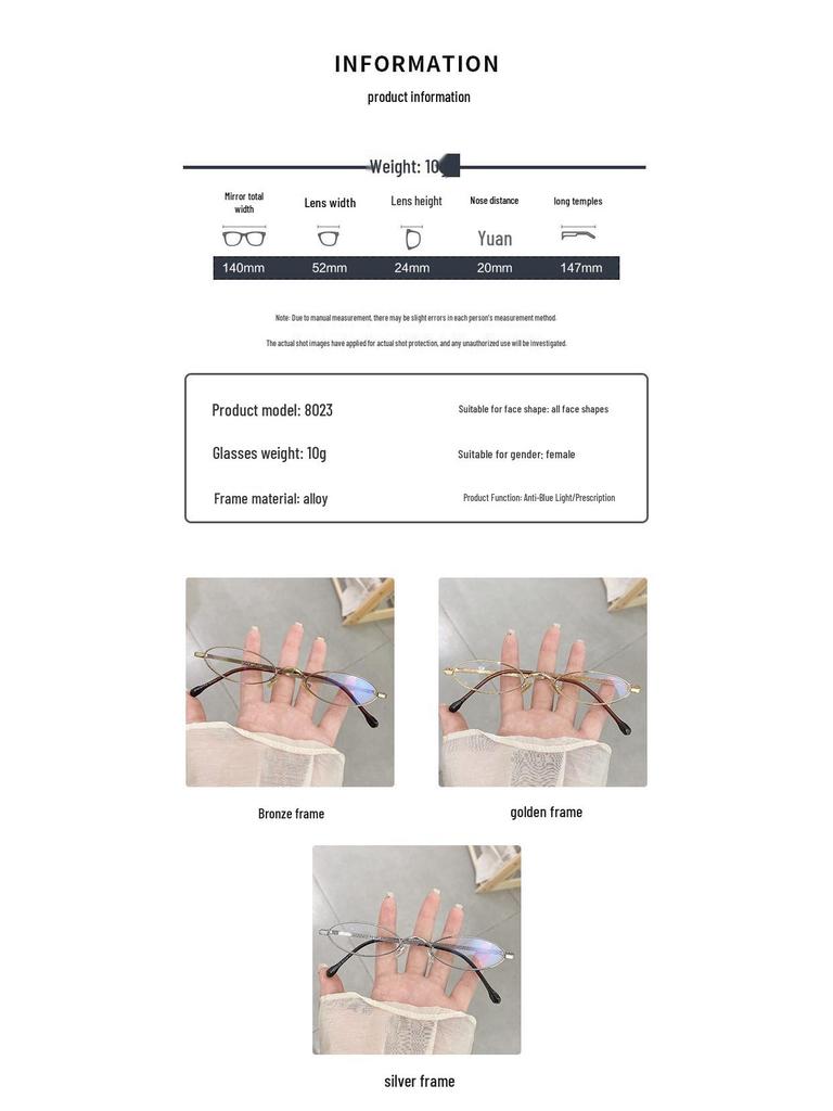 GH8023 Ochelari Ovali Bronz Antic pentru Femei - Ramă Mini de Nișă cu Design Decorativ