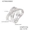 18k Gold-Plated Vintage Criss-Cross Diamond-Set Ring - European & American Chic Style, Non-Fading Stainless Steel.