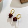 Burgundy Drip Glaze Heart Hoop Earrings for Women - Simple & Versatile Dangle Accessory