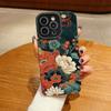 Husă de protecție spate din piele cu granulație verticală și imprimeu floral, din silicon moale, cu protecție completă pentru obiectivul camerei pentru Samsung