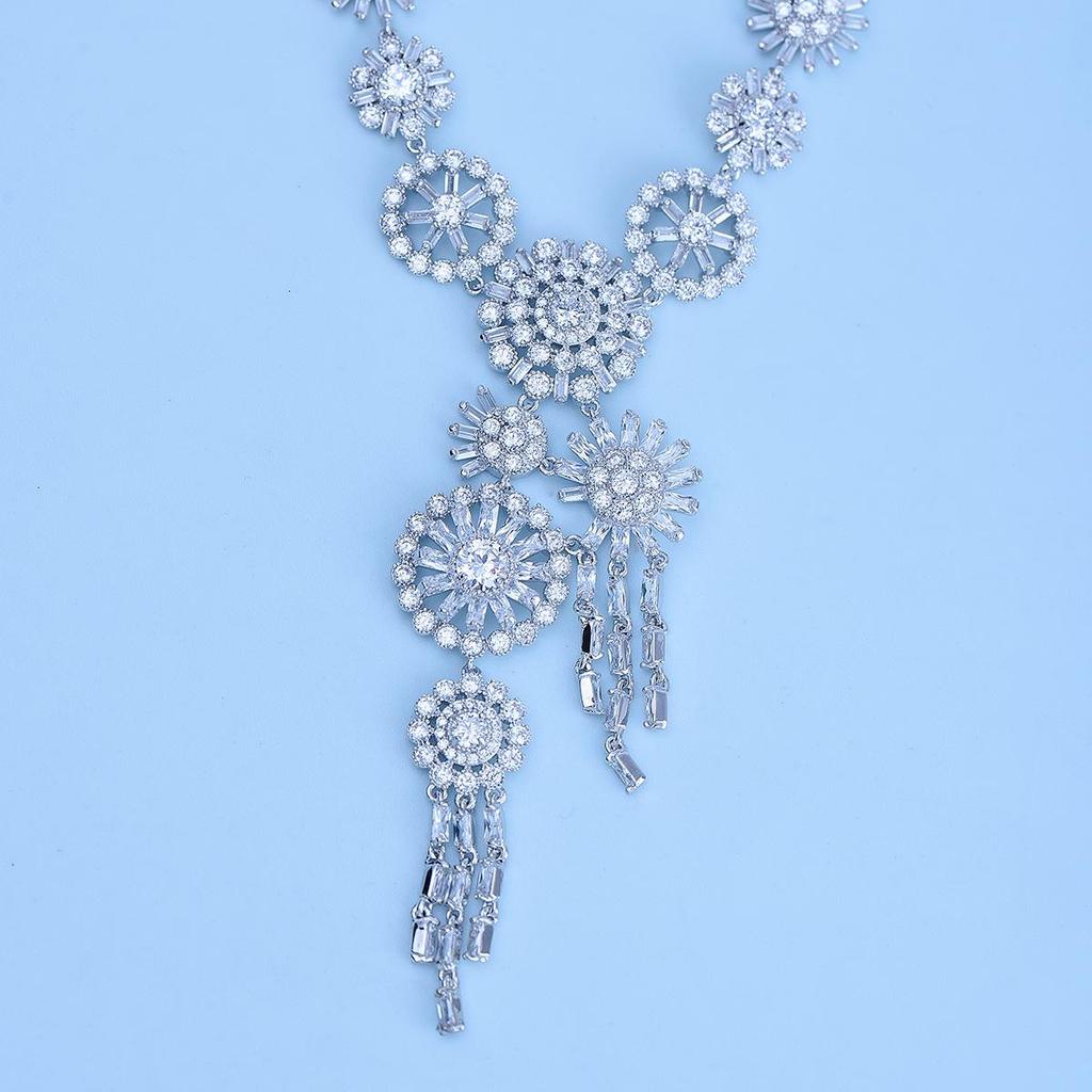 European-American Women's Brass Zircon Choker Necklace Set - Fashion Evening Party Bridal Jewelry J5179