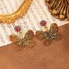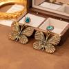 Vintage Butterfly Alloy Earrings with Inlaid Diamonds: Retro and Luxurious Statement Jewelry for Women