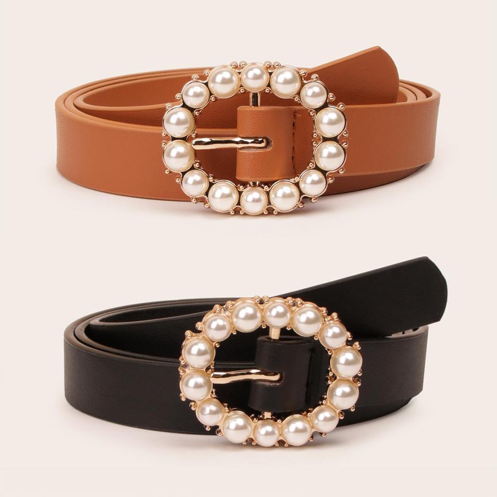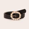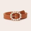 Elegant Women's Two-Piece Leather Waist Belt Set with Pearl Buckle