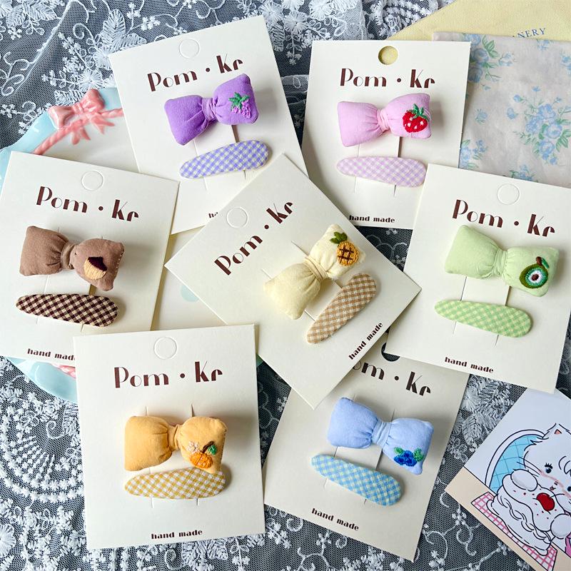 Cute Fruit Embroidered Gingham Hair Clip for Kids
