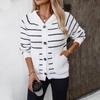 Autumn Winter Vintage Loose Long Hooded Sleeve Top Stripe Pullover Knitwear V-Neck Sweater