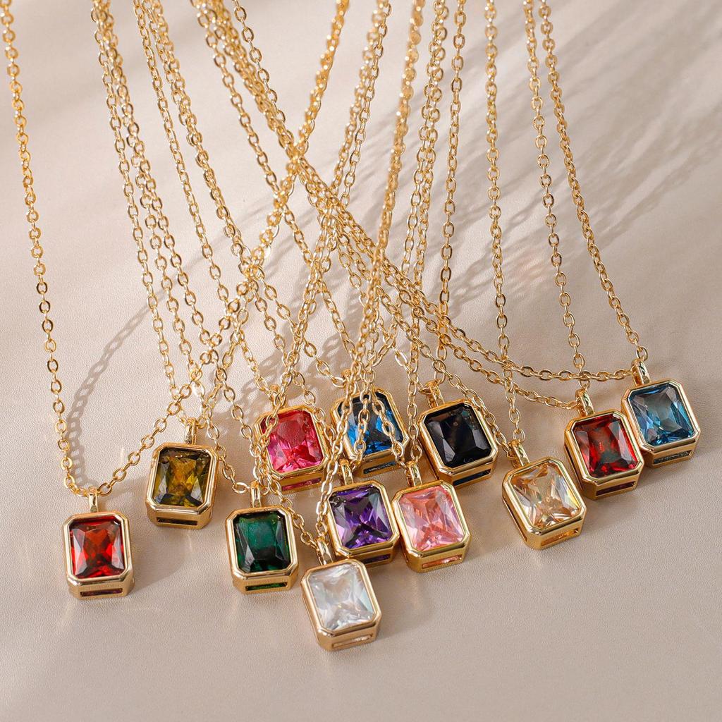 Colier cu pandantiv pătrat piatră de naștere decembrie, design picătură de apă, cupru galvanizat cu aur de 18K, accesorii lanț claviculă.