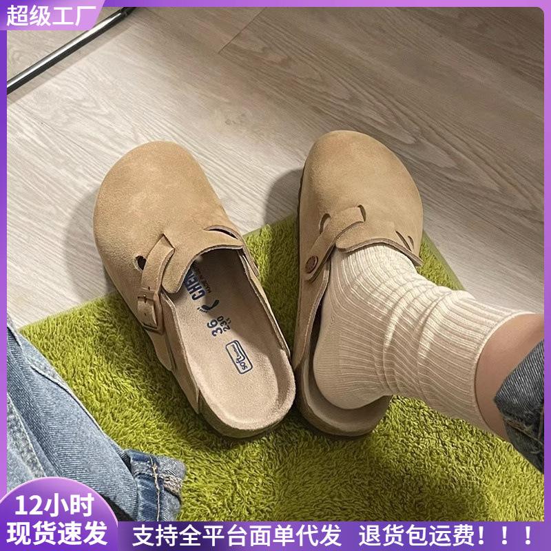 Leather pure original thick-soled slippers for women's summer fishing half slippers