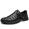 Men's shoes 2025 summer non-slip round head casual hole shoes men's hollow middle-aged leather sandals 2025