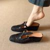 Soft leather version inner height increase cool slippers square head weaving hollow breathable T-buckle with wedge heel sandals women