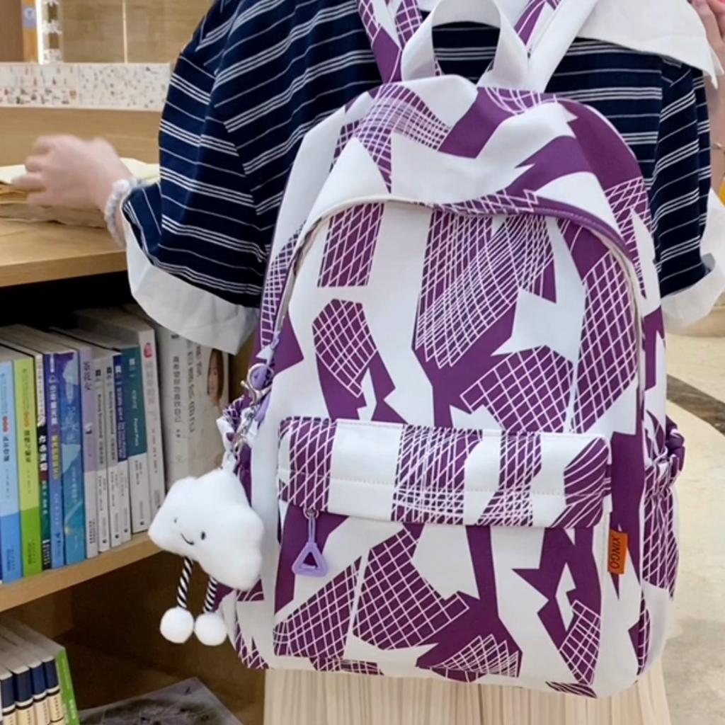 Stitching Color Backpack Student Schoolbag Large Capacity Backpack for Men Women