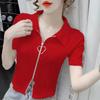 Slim and Slim High Waist Short Half-sleeved Top In Summer New Zipper Design Niche T-shirt for Women