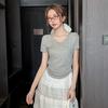 New U-neck short-sleeved T-shirt women's bottoming short slim-fit top