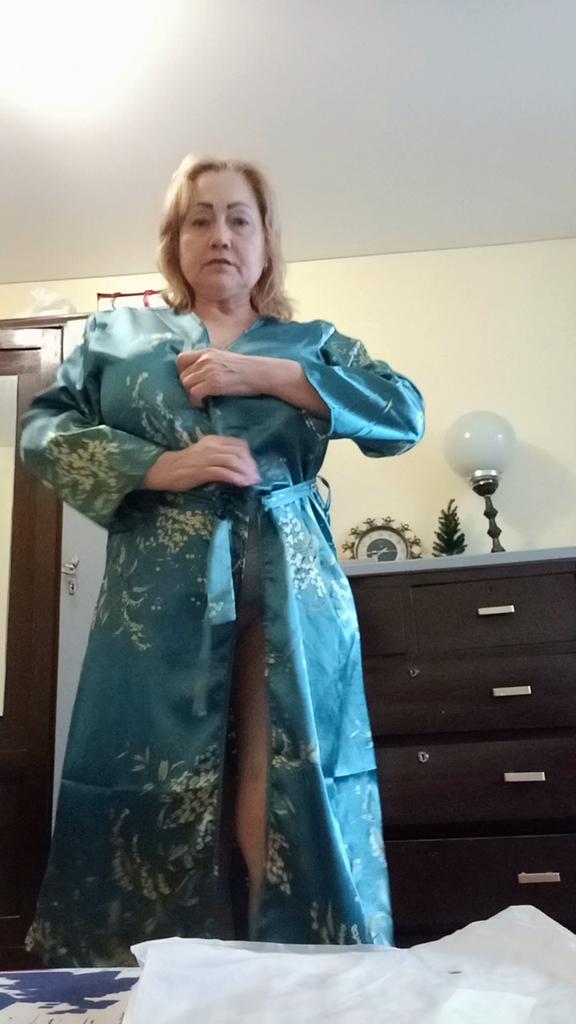 Halat elegant din mătase glacială, mărime Plus, cu mânecă lungă, șireturi și design imprimat