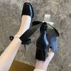 Bridesmaid shoes wedding straps and wedding dress high heels bride thick straps maternity shoes fashion beige word