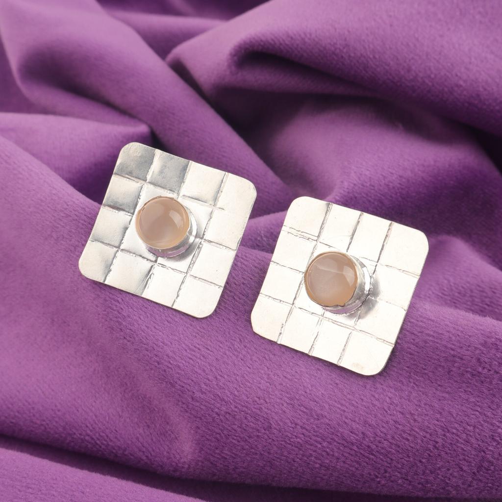Peach Moonstone Stone 925 Silver Push Back Engagement Gift Stud Earrings Jewelry EE-146-26
