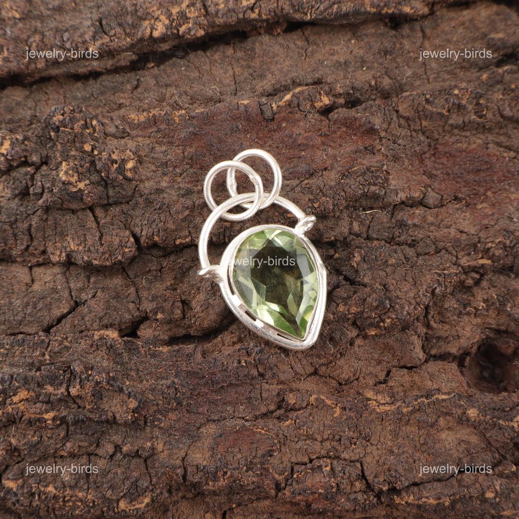 Pear Green Amethyst Stone Sterling Silver Unique Sisters Gift Wedding Pendant PP-56-10