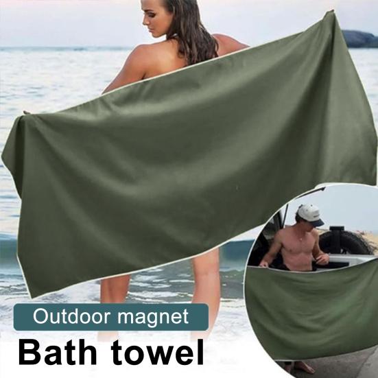 Introducing the magnetic bath towel, a versatile and compact essential for your daily routine. This innovative towel is designed to be as convenient as it is functional. When folded, it shrinks to the size of a mobile phone, making it easy to carry in your pocket without taking up much space. Equipped with a powerful magnet buckle, this towel can be securely attached to various surfaces such as locker room doors, beach chair frames, or bathroom pipes without the need for hooks. Say goodbye to slipping towels during bath time or changing clothes, as the magnetic buckle ensures a stable hold.