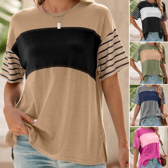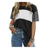 Women T-shirt Round Neck Short Sleeve Color Block Tee Shirt Loose Fit