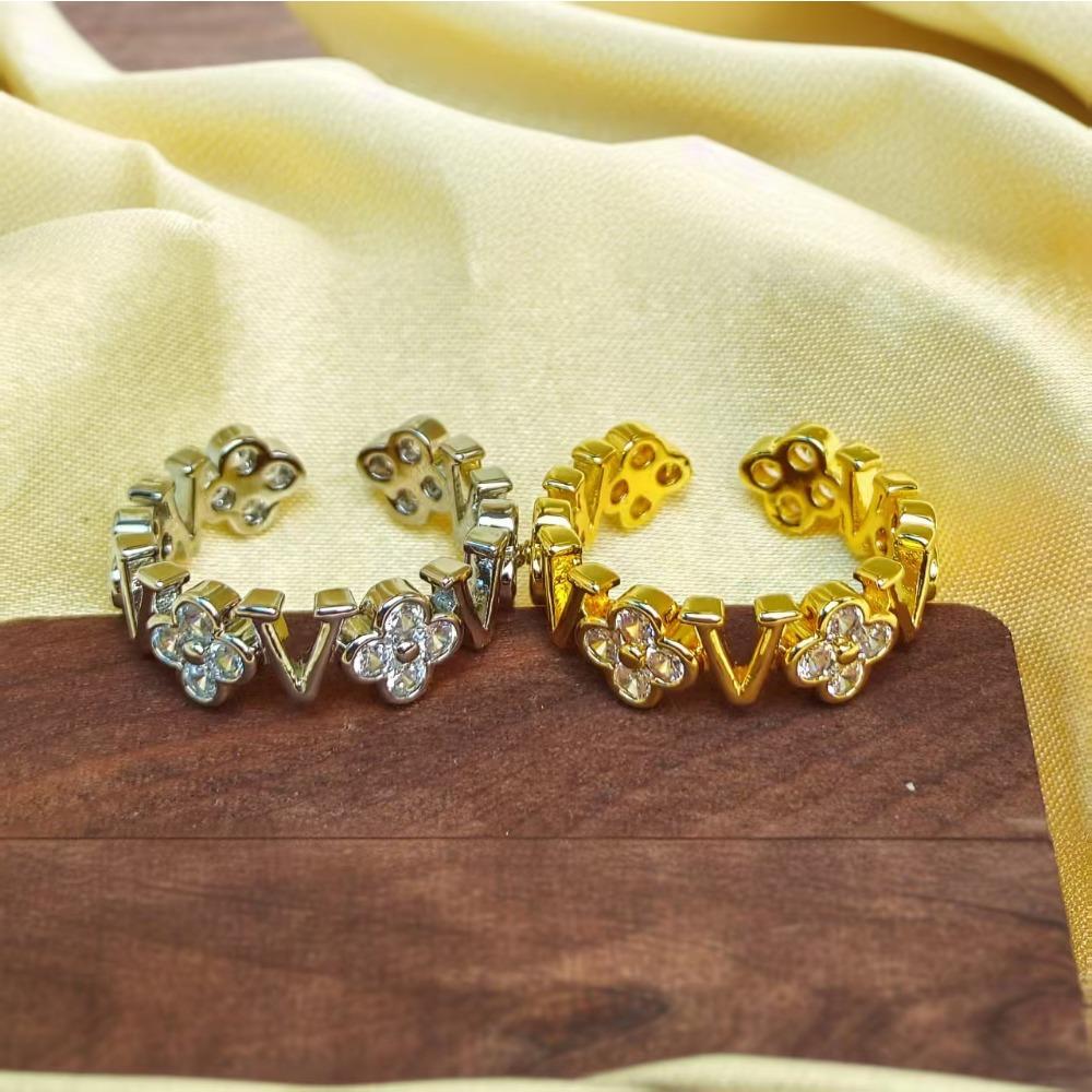 Four-leaf Clover Ring Opening Adjustable Zirconia Hollow Letters Fashion Women's Ring
