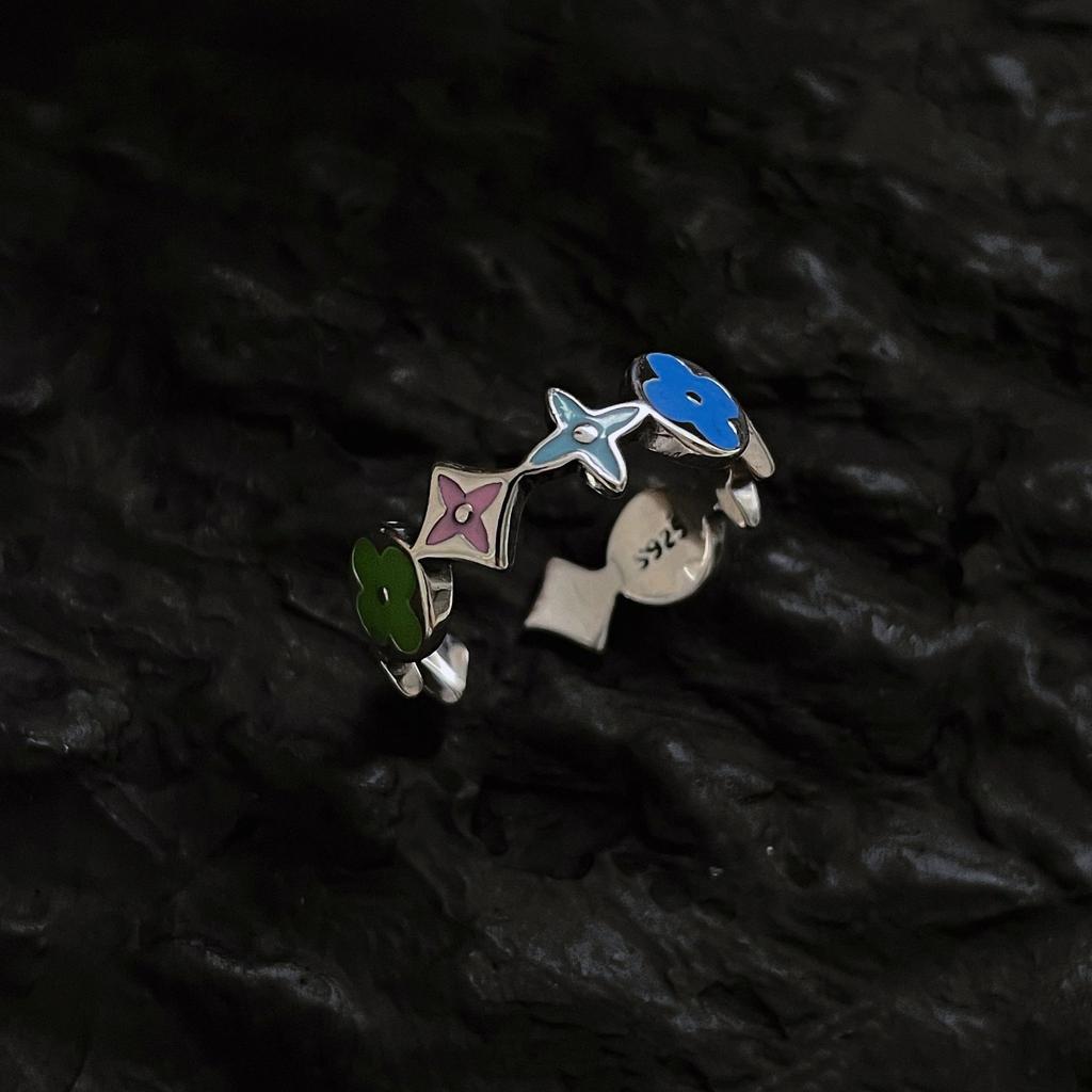 Four-leaf Clover Ring Colorful Drip Glaze Small Flower Opening Senior Sense of Fashion Personality Hundred with New Tide Ring