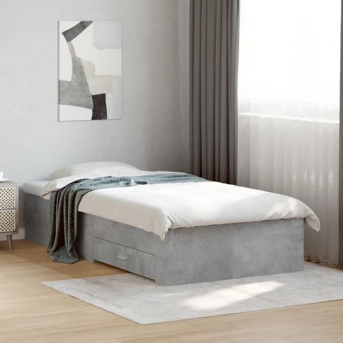 VidaXL Cadre de Lit et Tiroirs, Sommier à Lattes, Lit Adulte, Lit Simple de Chambre à Coucher Intérieur, Gris Béton 90x190 3280436