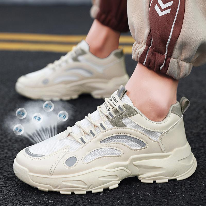 2025 spring and autumn new casual mesh sports shoes breathable men's shoes trend student platform dad shoes men's fashion
