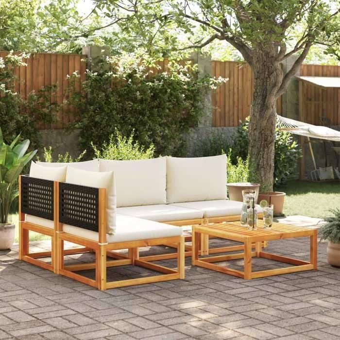 VidaXL Ensemble de canapés de jardin 5 pièces avec coussins en bois d'acacia et rotin 3278888