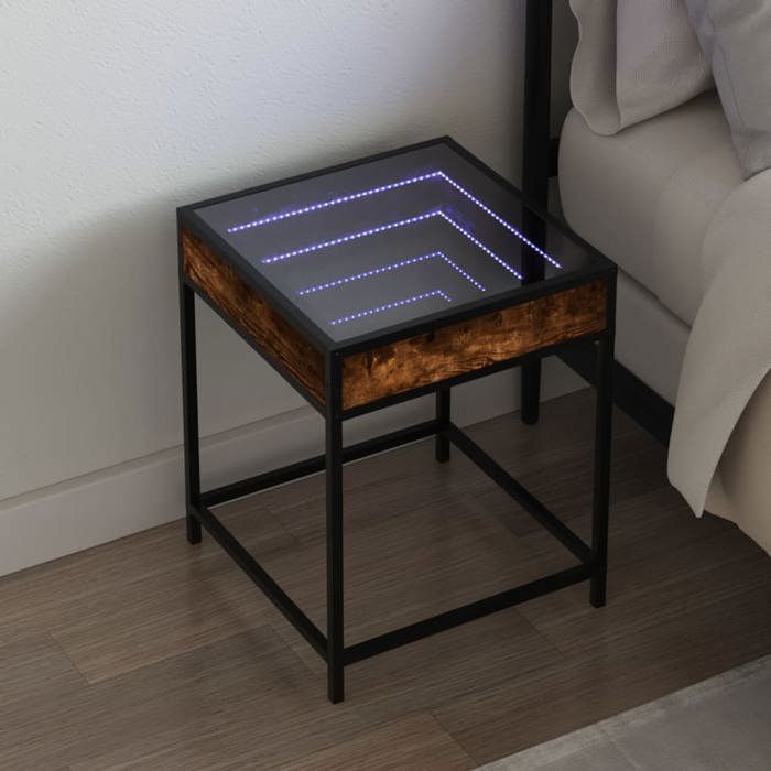 VidaXL Table de chevet avec LED infini chêne fumé 40x40x51 cm 3284093