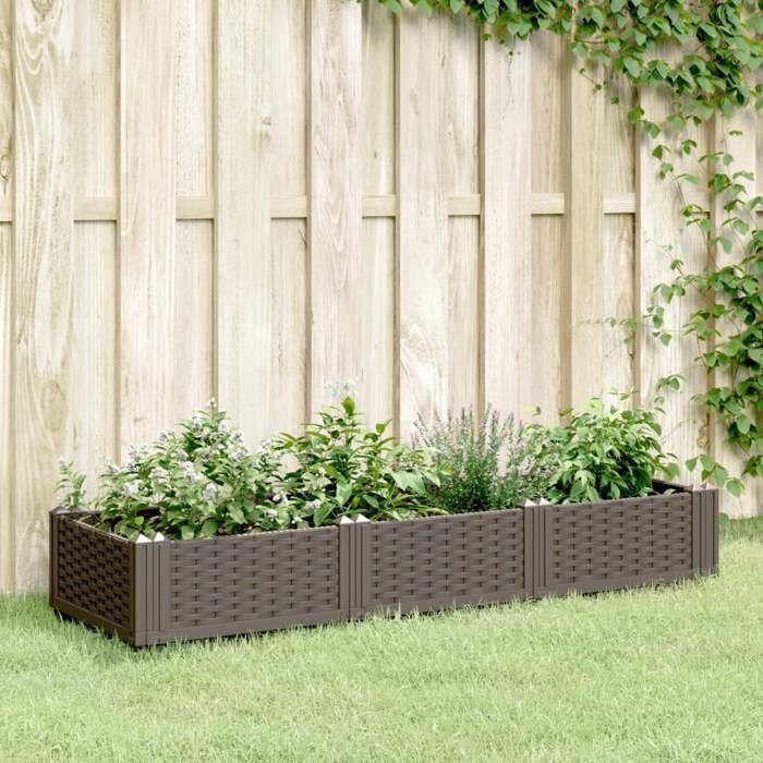 VidaXL Jardinière avec piquets marron 125x40x28,5 cm PP, bac à fleurs, support de jardinière, support de fleurs, bac à 368011