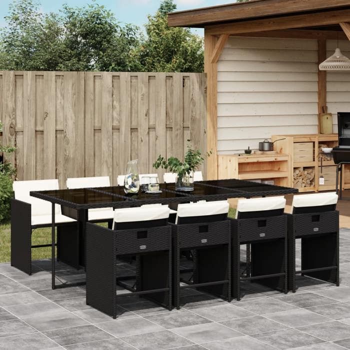 VidaXL Ensemble à manger de jardin 9pcs coussins noir résine tressée 3277865