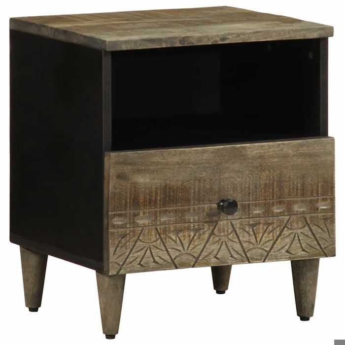 VidaXL Table de chevet gris clair 40x33x46 cm bois de manguier solide, armoire de lit, meuble de chambre à coucher, table de 4017798