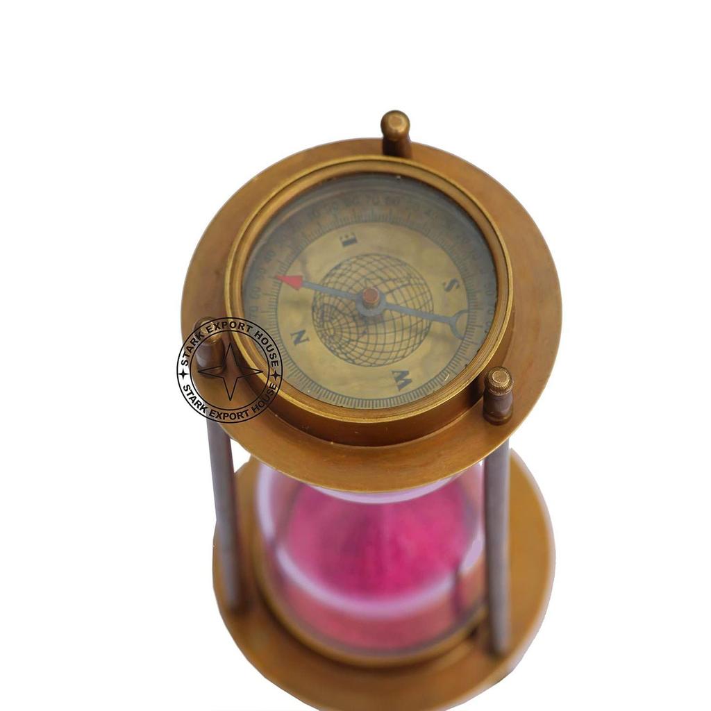 Clepsidră din alamă cu nisip, ceas cu nisip cu busolă, 7 inch