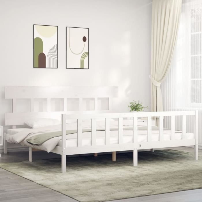 VidaXL Cadre de lit avec tête de lit blanc 200x200 cm bois massif 3193357