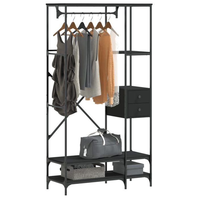 VidaXL Porte-vêtements avec étagères noir bois d'ingénierie, porte-manteau, tringle à vêtements, portant à vêtements, rail 847859