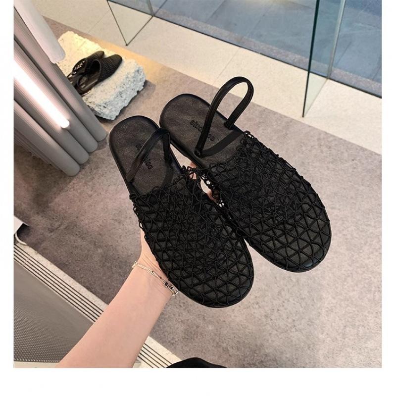 Stylish hollow mesh bag head with beach flat bottom half slippers female summer