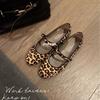 New favorite~ Leopard print horse hair buckle strap flat Mary Jane ballet single shoes women's grandma shoes
