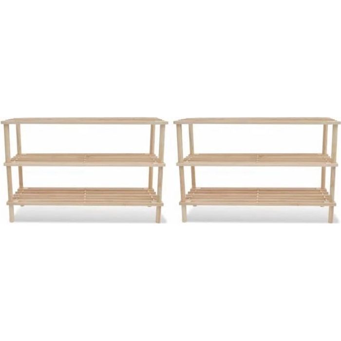 VidaXL Range-chaussures à 3 étagères 2 pcs Bois de sapin solide