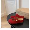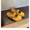 Leather thick-soled small golden bean half slippers women's inner height increase of 5cm new sandals