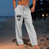 Men's Casual Loose And Comfortable Casual Pants Cotton Linen Printed Drawstring Trousers