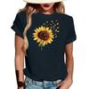 Women's Fashionable Round Neck Casual Retro Print Short Sleeved T-shirt Top