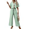 Seturi Dama din Două Piese Casual Largi cu Mânecă Scurtă cu Guler cu Nasturi și Pantaloni cu Picior Larg cu Șnur Elastic