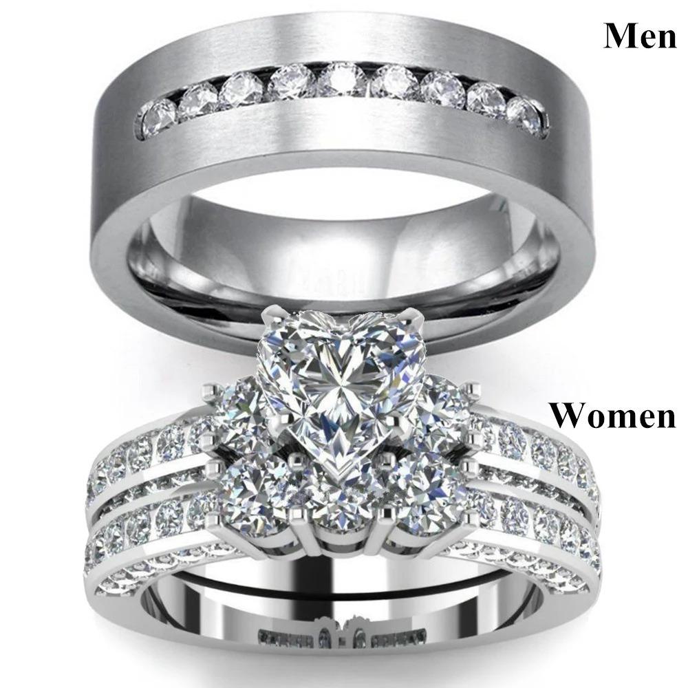 Inele de Cuplu Pentru Femei Inimă Strasuri Inele cu Zirconiu Set Inel Simplu CZ Oțel Inoxidabil Bărbați Bijuterii de Nuntă Pentru Iubit Cadouri