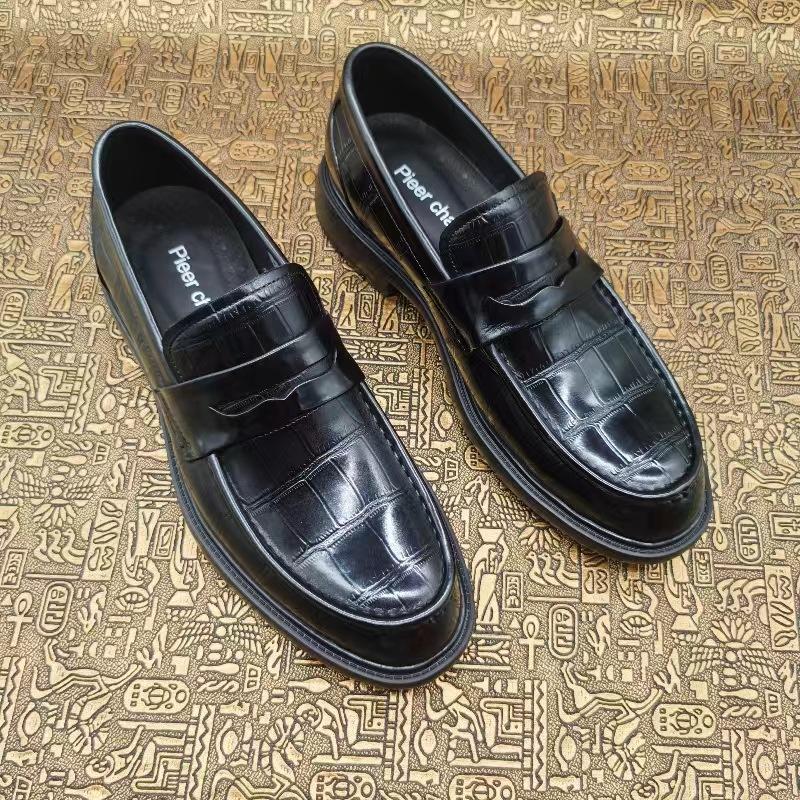 High-end first-layer cowhide loafers, men's British style leather shoes, genuine leather glossy business dress, foot-fitting Doudou shoes