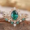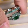 Luxury Inlaid with Green White Stone Gold Color Round Hollow Flower Rings Set Fashion Party Rings for Women Jewelry