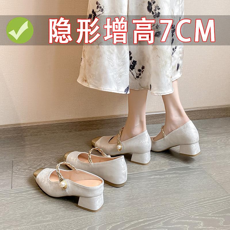 7lm bag head half slippers women wear new cheongsam Hanfu single shoes in summer, inner height-increasing sandals