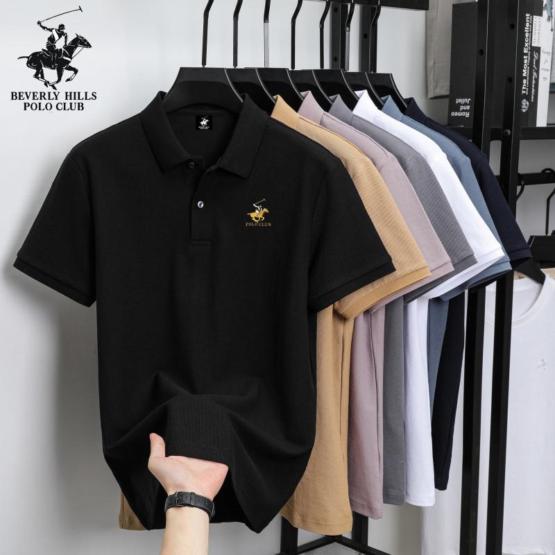 POLO CLUB Summer Men's New Pony Embroidered Solid Color Mercerized Cotton Loose Moisture Wicking and Quick Drying Casual Polo Shirt