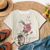 Fashion and Artistic Style Blue Floral Red Floral Print Daily Casual Women's Short Sleeved T-shirt