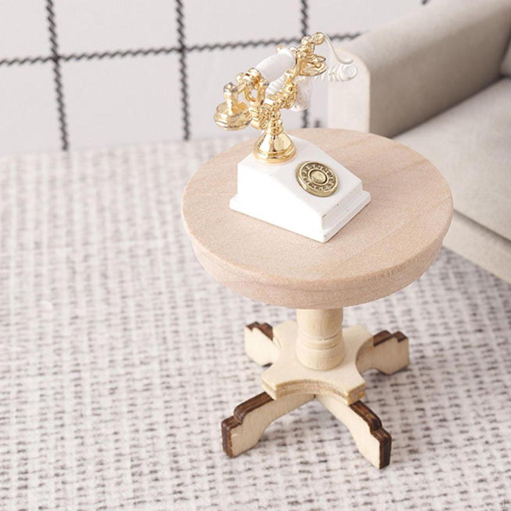 1/12 Dollhouse End Table Model Toy Furniture Crafted Round Mini Desk Pretend Play Ornament