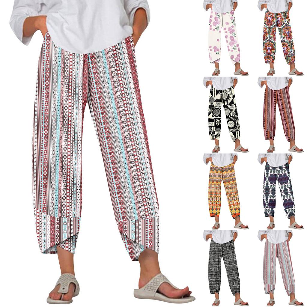 Women's Pants With Pockets Casual Trousers Pants For Women Summer Casual Wide Leg Elastic Waist Pants With Pockets